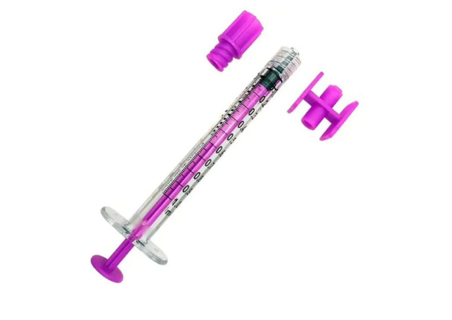 Embalagem com 1 seringa de 1ml com adaptador de transferência e capa.