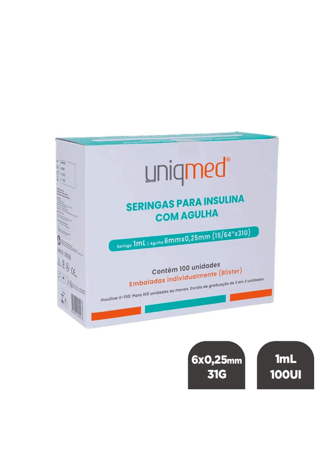 SERINGA DESCARTAVEL 1ML 6MMX25MM (15/64X31G) CAIXA C/ 100 UNIDADES - UNIQMED