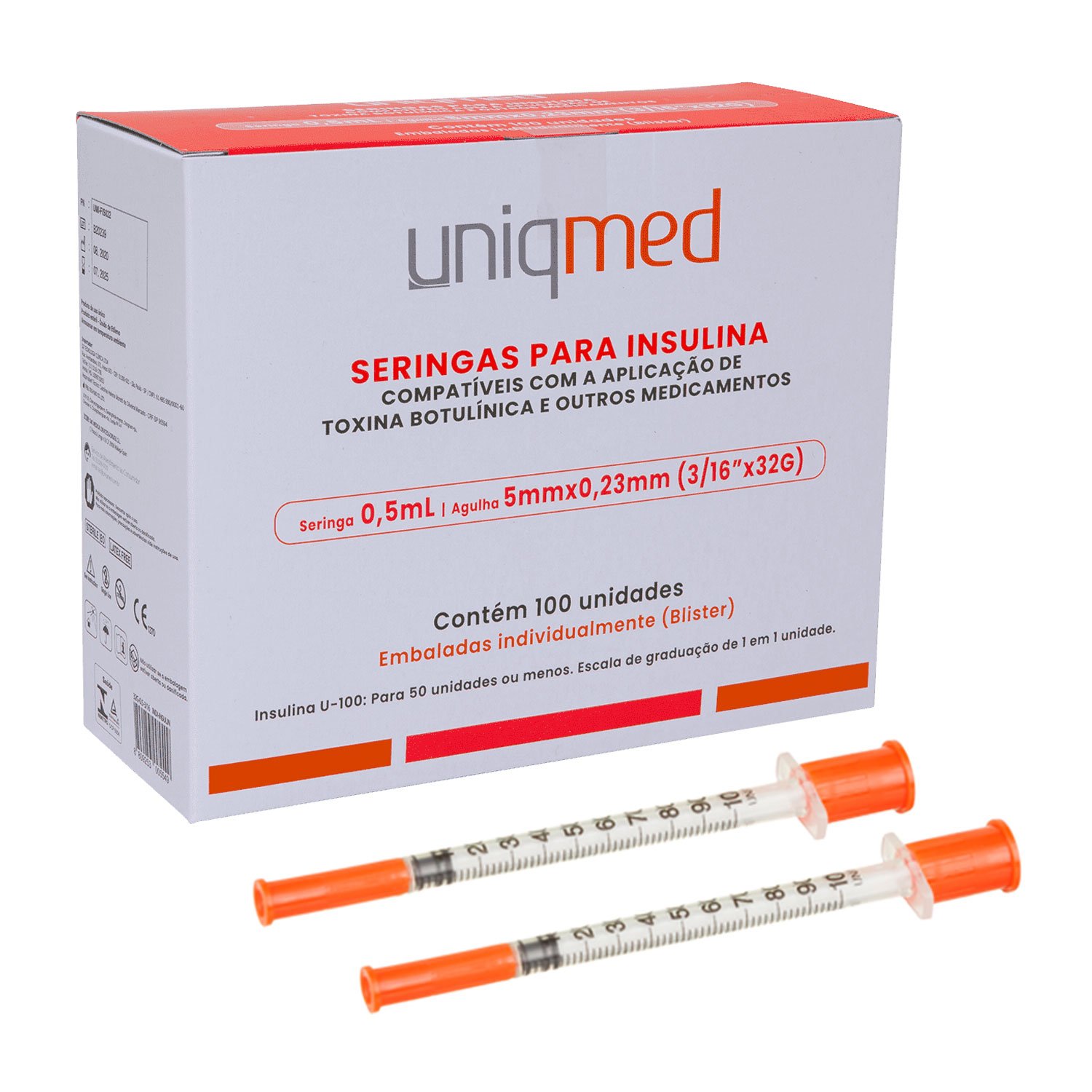 * Insulina U-100: 0,5ml para 30 unidades ou menos.