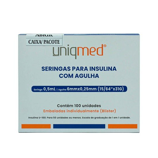 * Insulina U-100: 0,5ml para 30 unidades ou menos.
