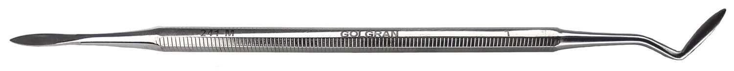 Utilizado em cirurgia para descolamento de gengiva pela angulação de sua lâmina. Facilita o trabalho na região distal.