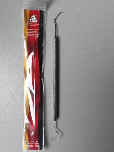A sonda exploradora é utilizada para auxiliar a localização da entrada do canal radicular.* Aço inox.* Autoclavável.