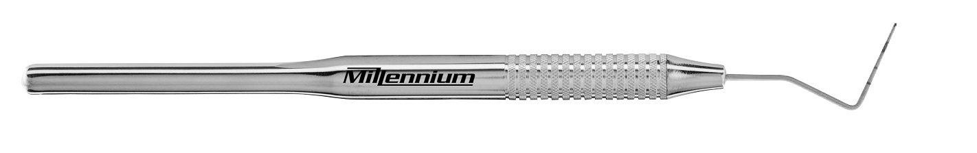 SONDA MILIMETRADA OMS MILLENNIUM é Utilizada em periodontia para avaliar a profundidade das bolsas, nível de ligação, configurações anatômicas e sangramento gengival. É muito utilizada em estudos epidemiológicos, pois a esfera na ponta ativa ajuda a evidenciar com maior facilidade a inflamação local Possui marcação de 3,5mm - 5,5mm e 11,5mm.