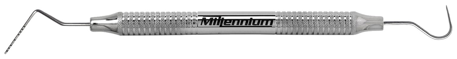 Possui as 2 pontas ativas anguladas para facilitar o exame periodontal em todos os sextantes, além das marcações a laser dos milímetros para melhor avaliação do nível de profundidade da bolsa gengival.
